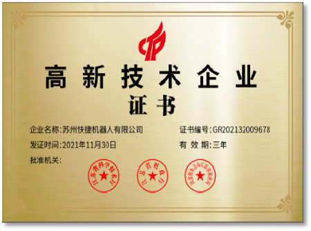 截止2025年,快捷智能已榮獲國家高新技術企業(yè)、科技型中小企業(yè)、瞪羚企業(yè)、專精特新中小企業(yè)、企業(yè)技術中心等多項榮譽,通過質量管理體系認證等多項企業(yè)和產(chǎn)品認證。